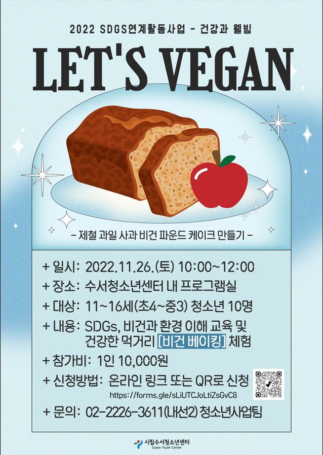 네 번째 미션, 건강과 웰빙을 위한 '비건'을 이해하고, 베이킹 체험 '제철 과일 사과 비건 베이킹 파운트 케이크' 만들기