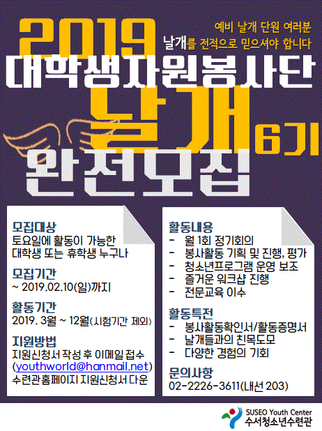 | [동아리] 2019 대학생자원봉사단 날개 6기 모집 |