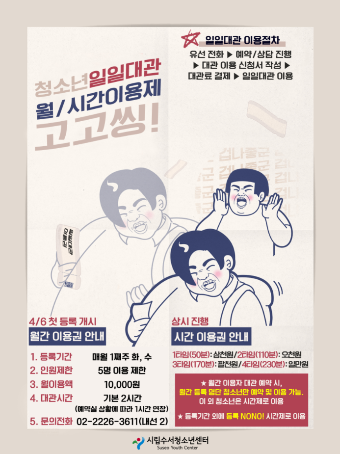 기존 시간제 이용과 신규로 월간 이용제를 포함 운영하고 있으니, 아래의 포스터를 참고해서 이용해주세요!