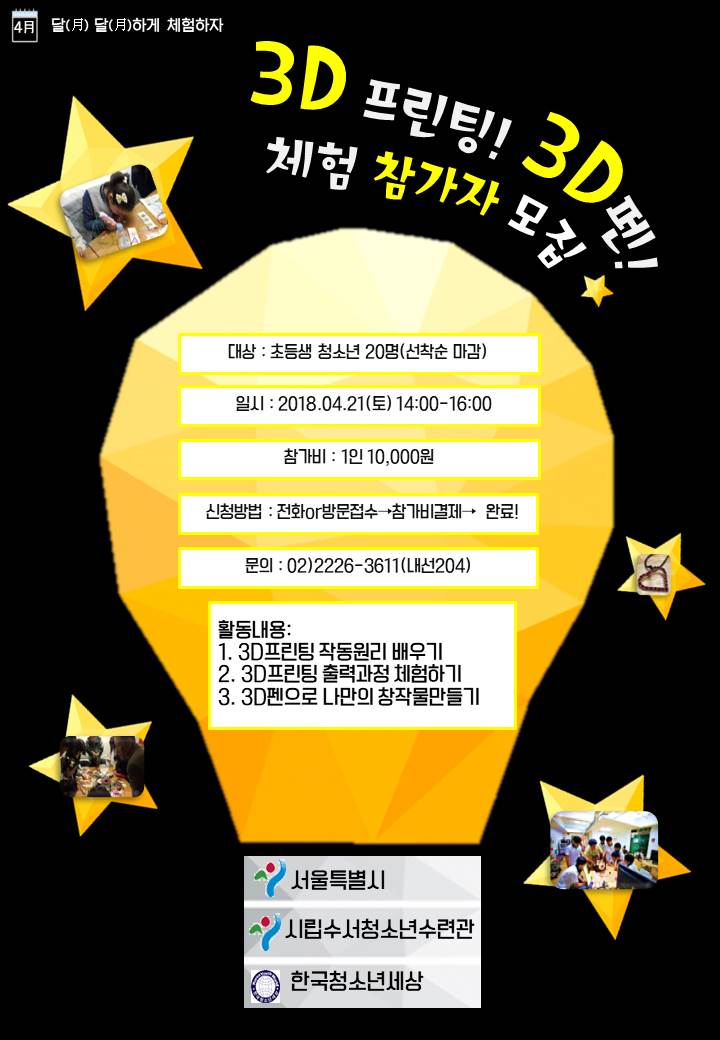 달[月]달[月]하게 체험하자- 4월 활동은 과학의 날 맞이 "3D프린팅 체험 및 3D펜으로 나만의 창작물만들기"입니다