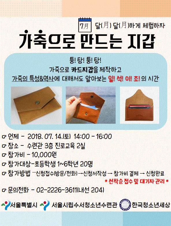 [체험] 7월 달(月)달(月)하게 체험하자 - 가죽카드지갑제작