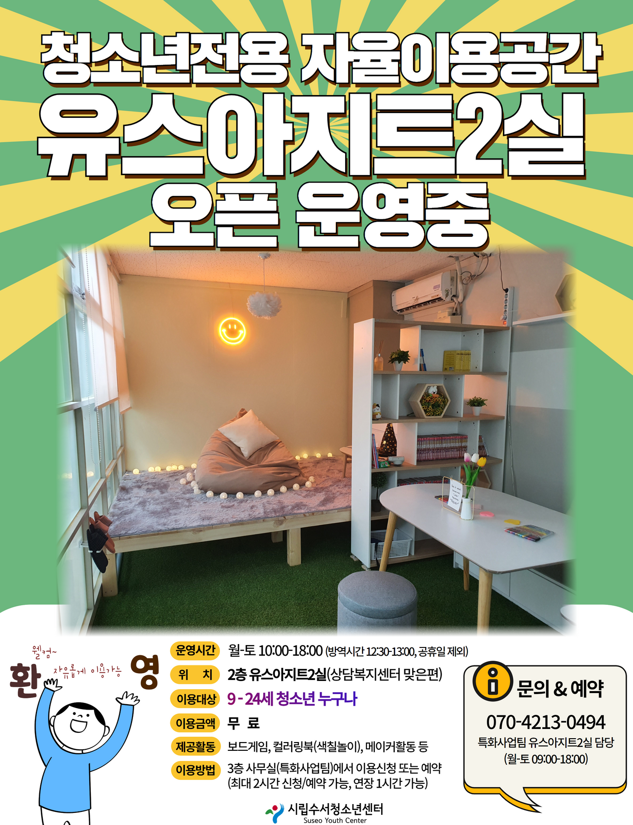 | 청소년전용 자율이용공간 유스아지트2실 이용 안내 |