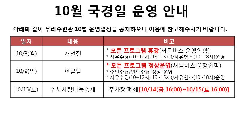 10월 수련관 운영안내