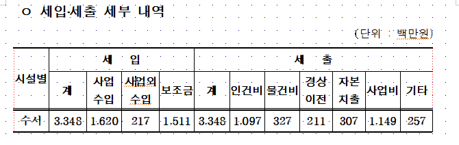 시립수서청소년센터 2022년도 예산·사업 내역 고시(추가경정)