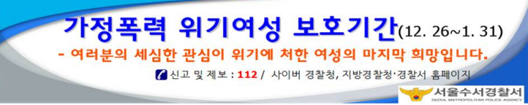 가정폭력 위기여성 보호기간 안내(수서경찰서)