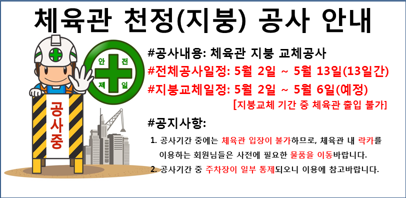 체육관 공사안내(5/2~5/6 예정)