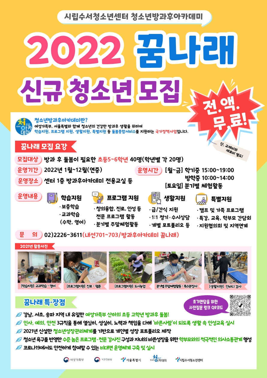 | 2022 수서청소년방과후아카데미 꿈나래 신규 참여 청소년 모집 |